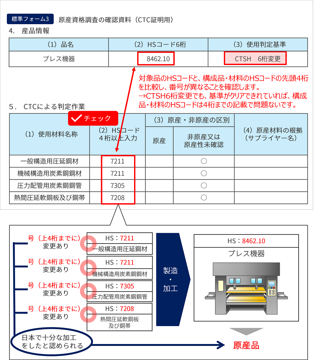 必要な桁数とは、輸出品と構成品(材料)の間で、品目別原産地規則をクリアすることを確認できれる桁数のことです。