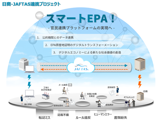 経済連携協定(EPA)活用の貿易プラットフォーム国内初の官民連携によるシステム間接続を実現~EPA活用プラットフォーム「JAFTAS®」、経産省/日本商工会議所の原産地証明書発給システムとの接続実現により、スマートEPA時代へ前進~